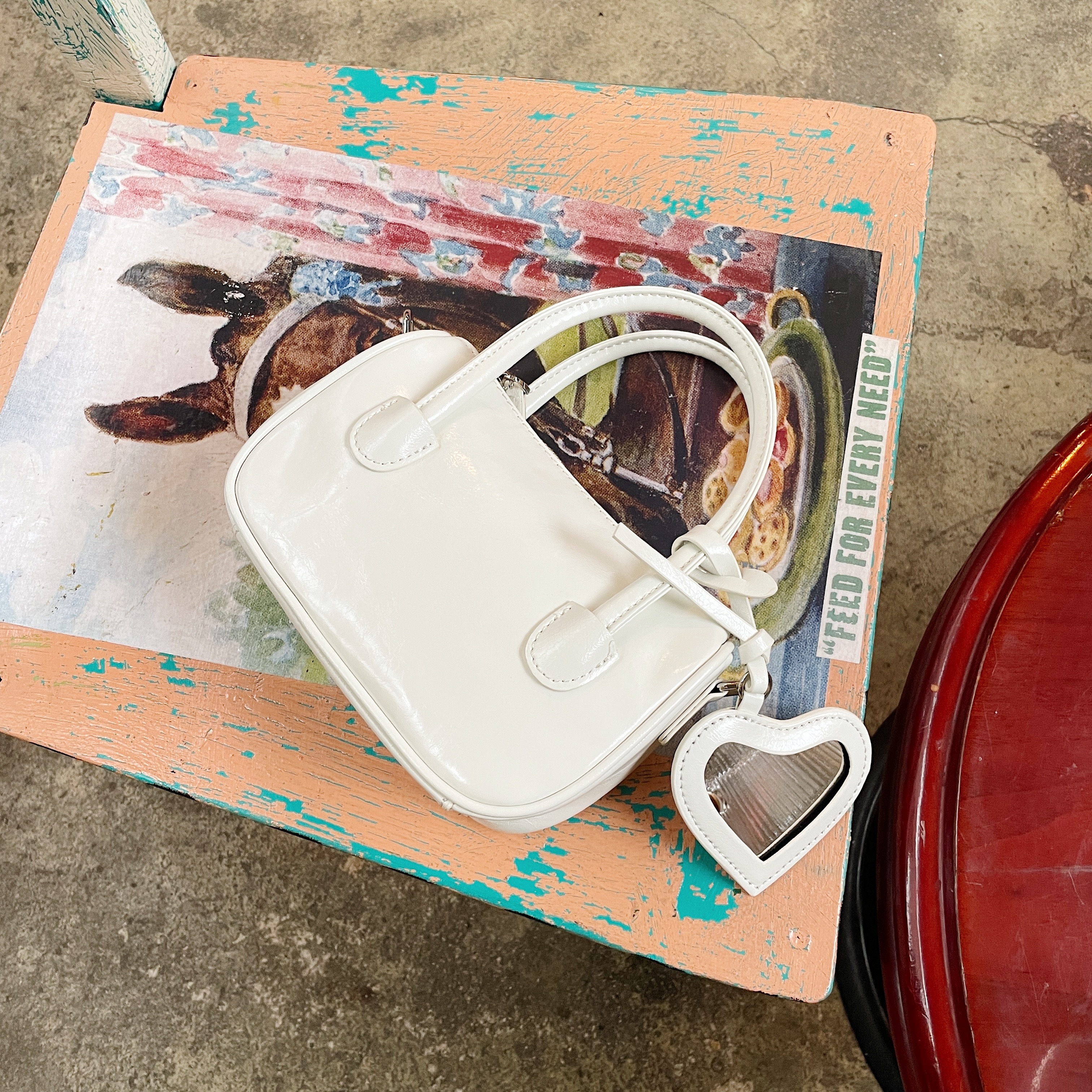牛皮 ♡ 連同心心鏡子 & 長肩帶!
