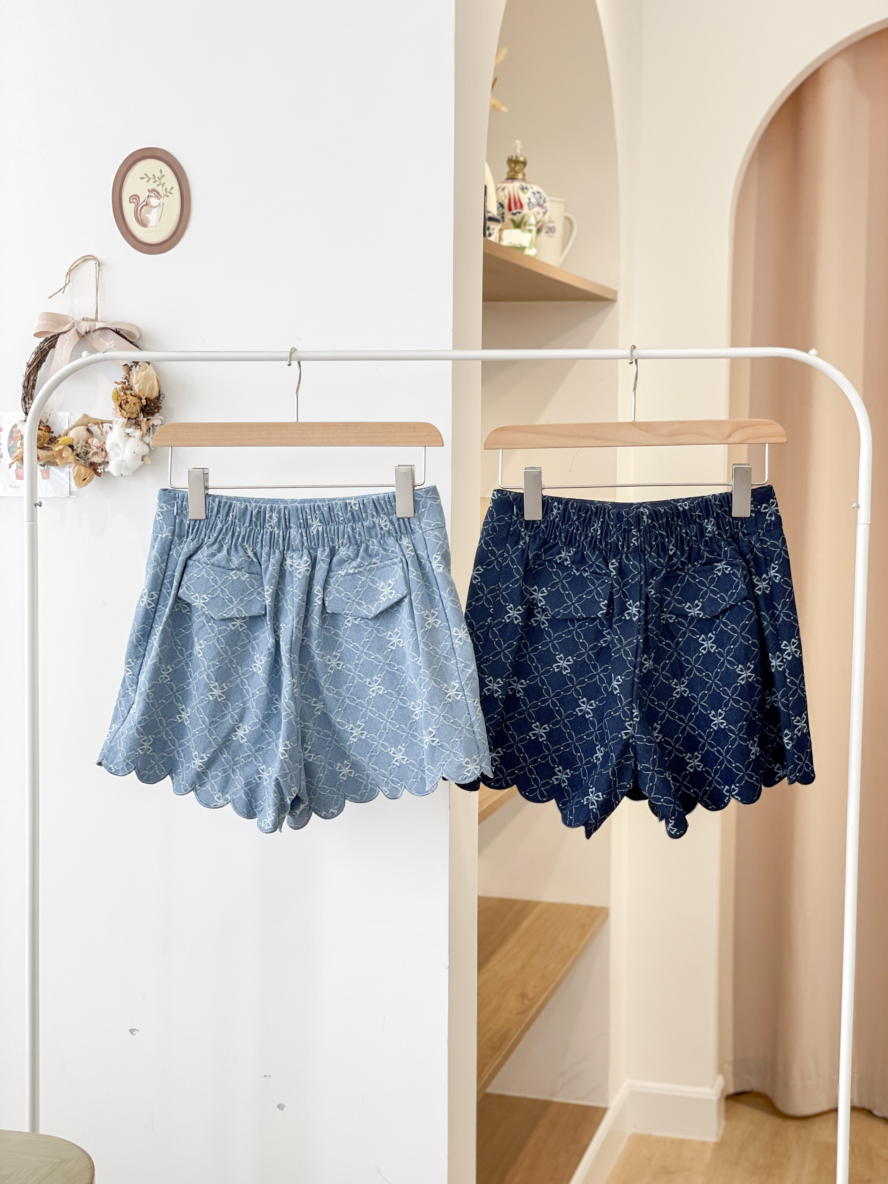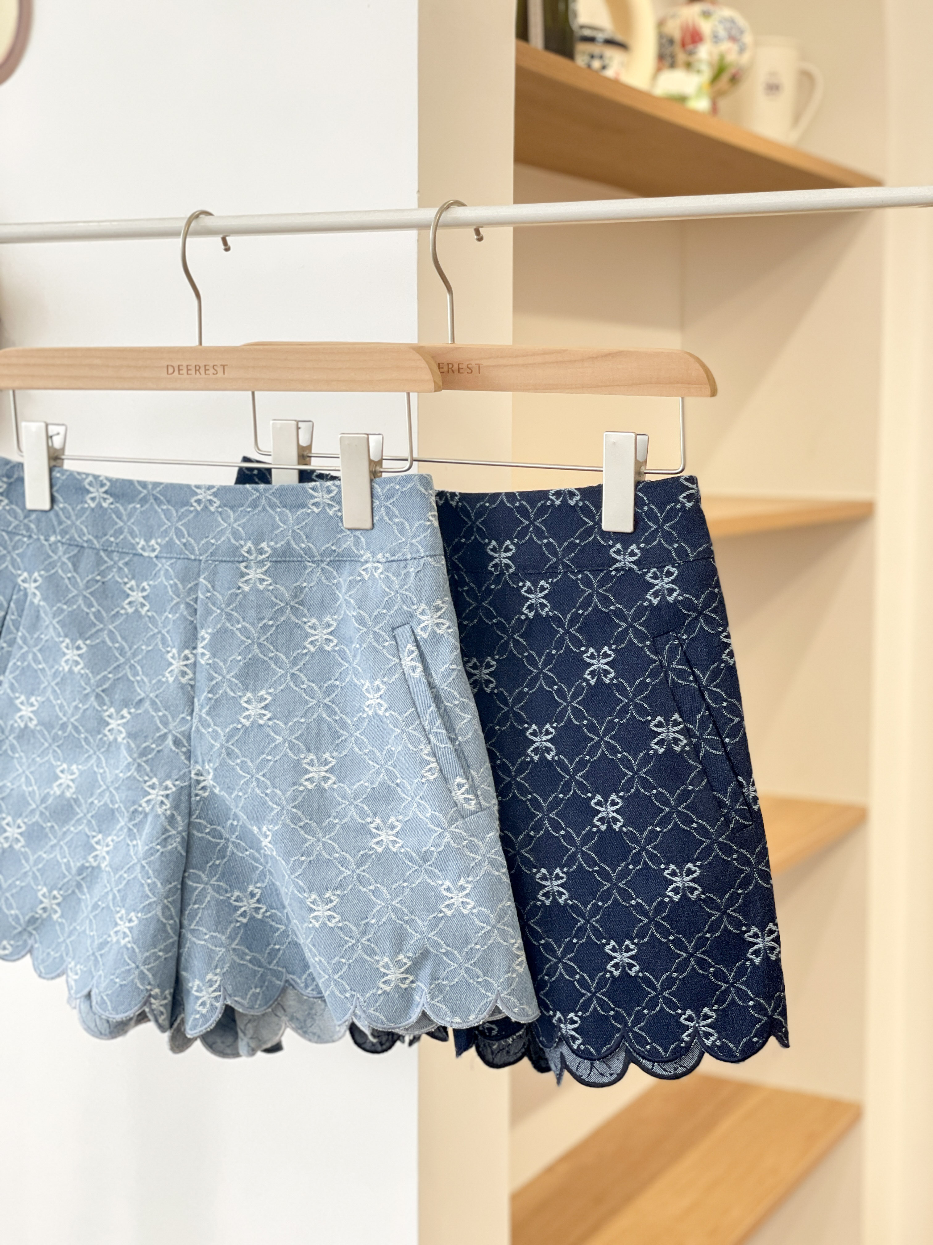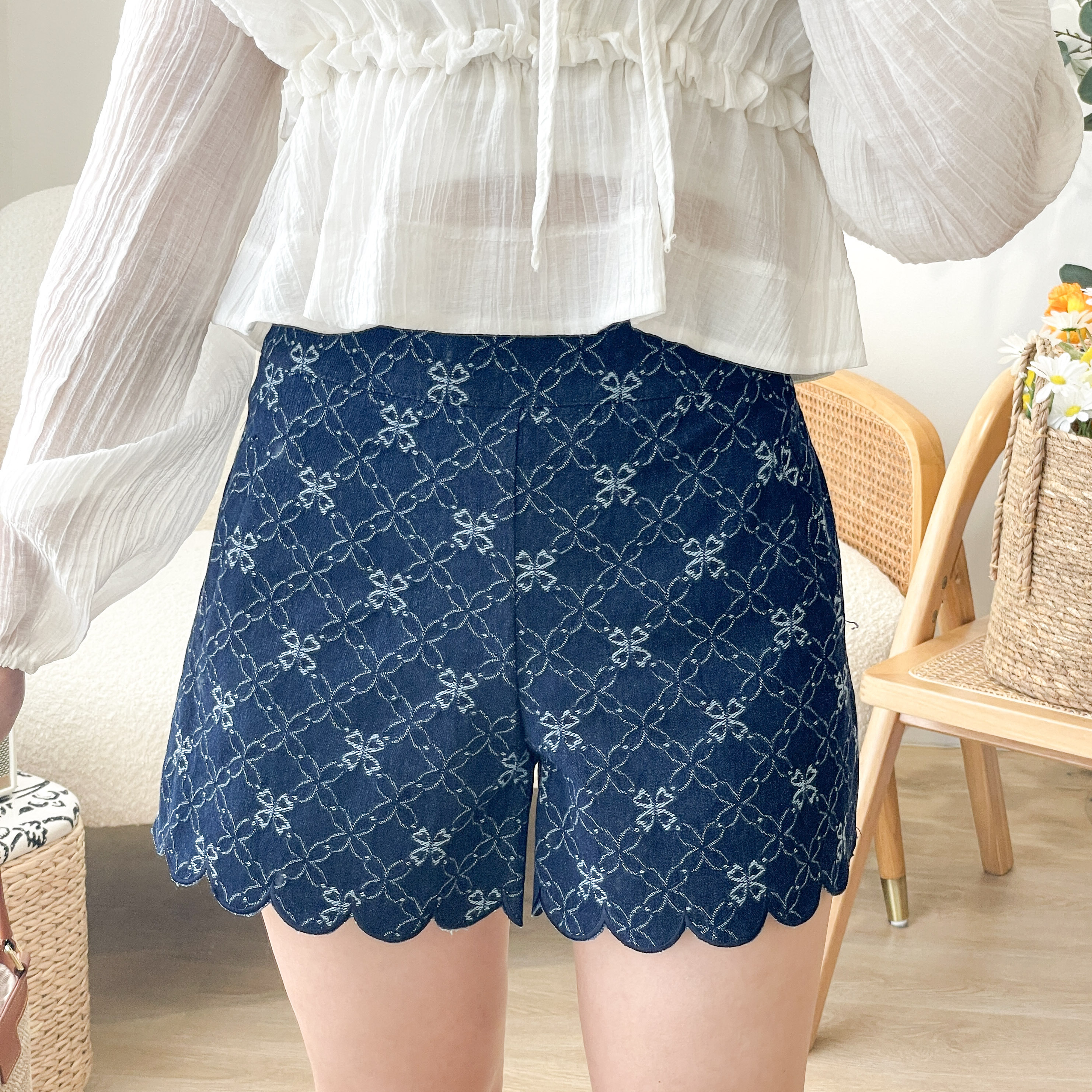 JEAN180 Embroidered Scallop Denim Shorts