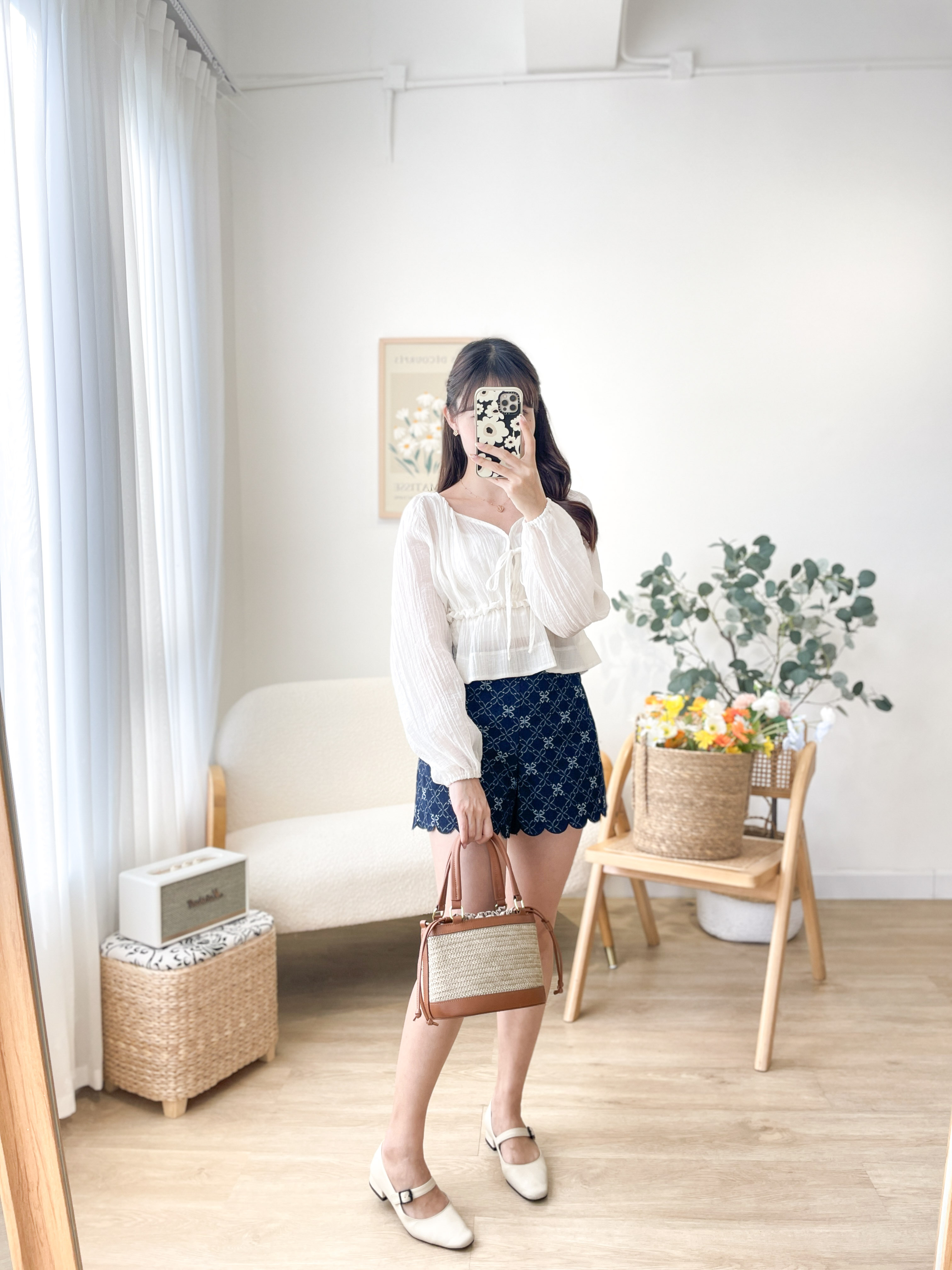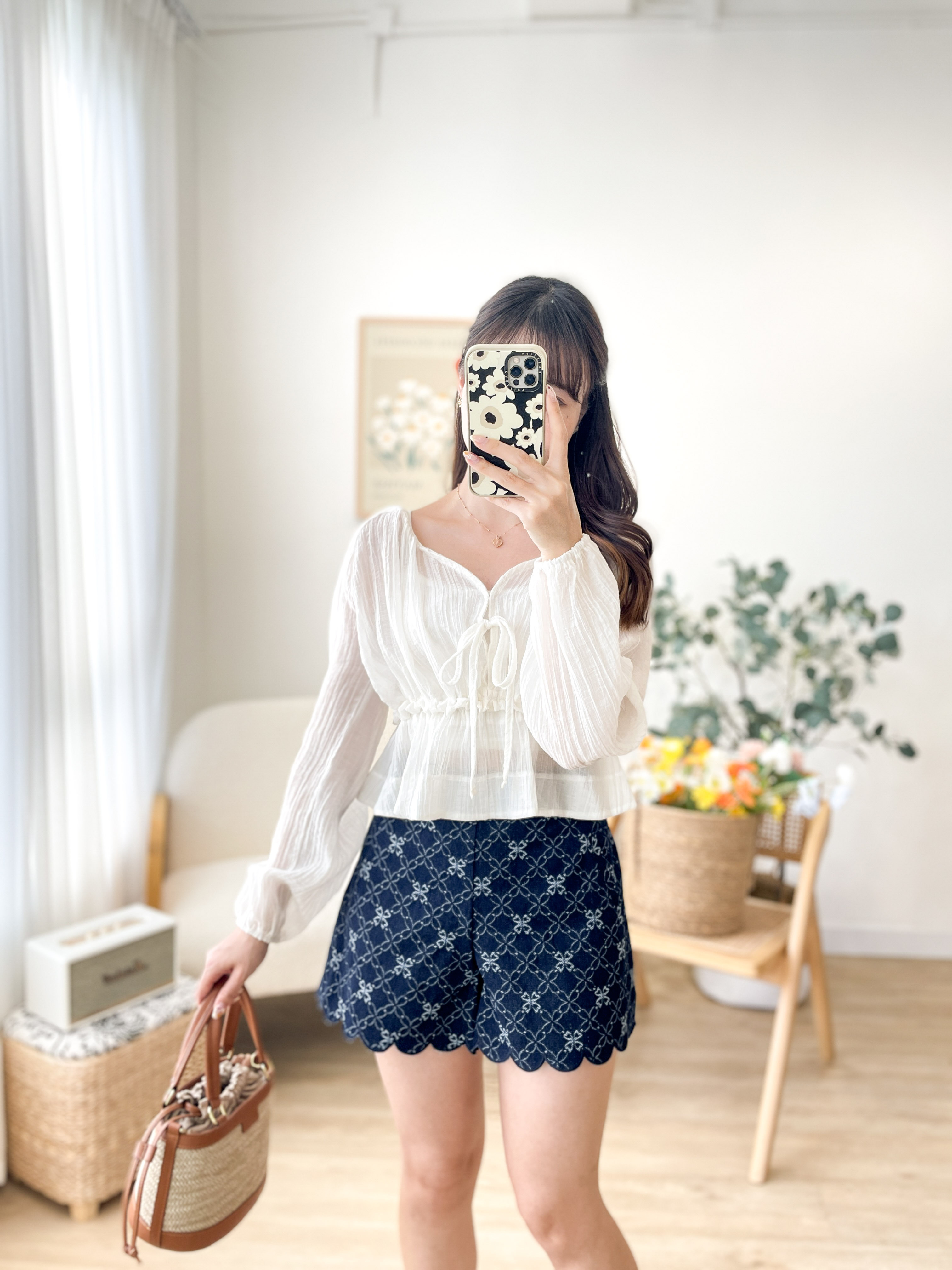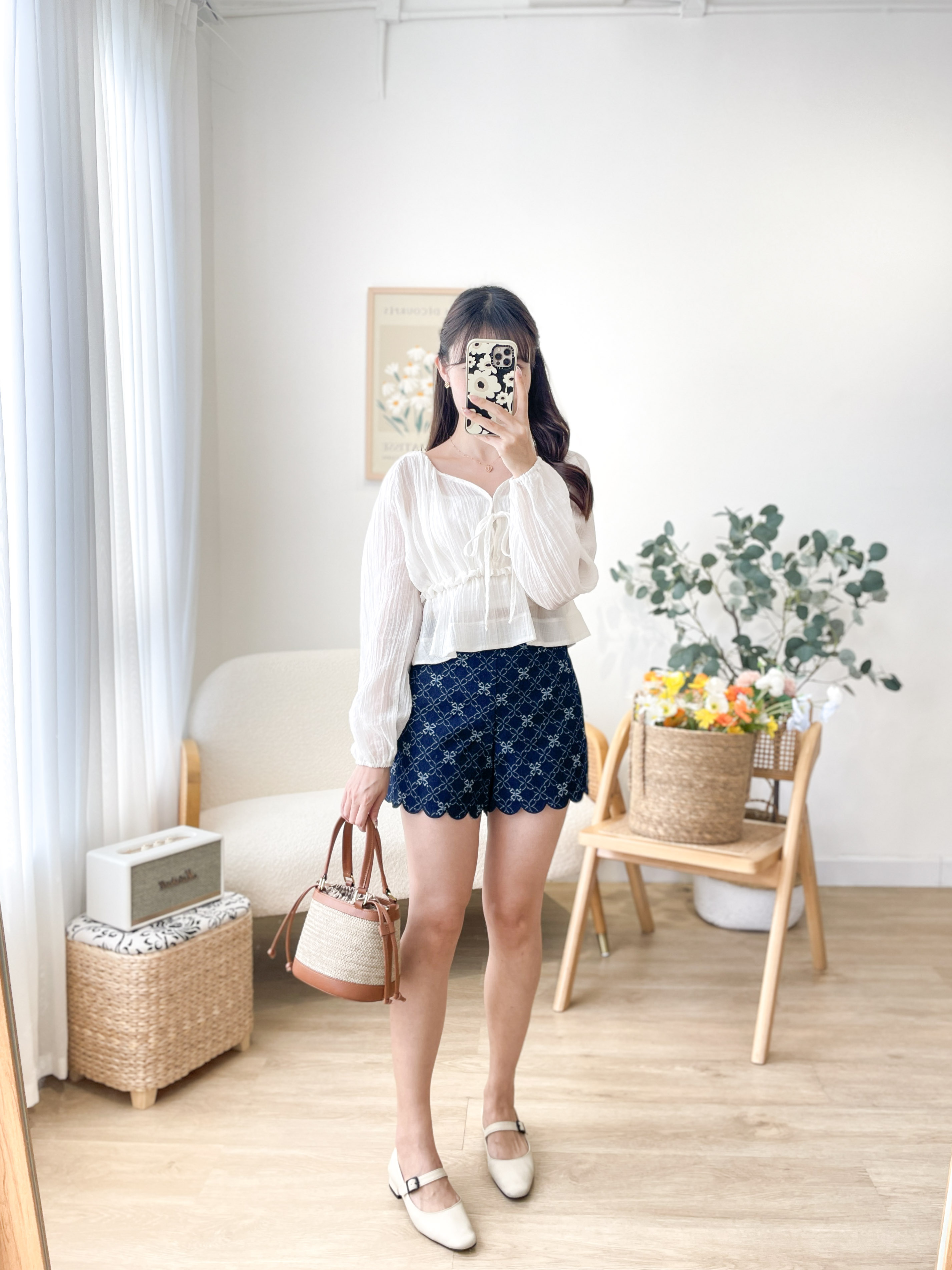 JEAN180 Embroidered Scallop Denim Shorts