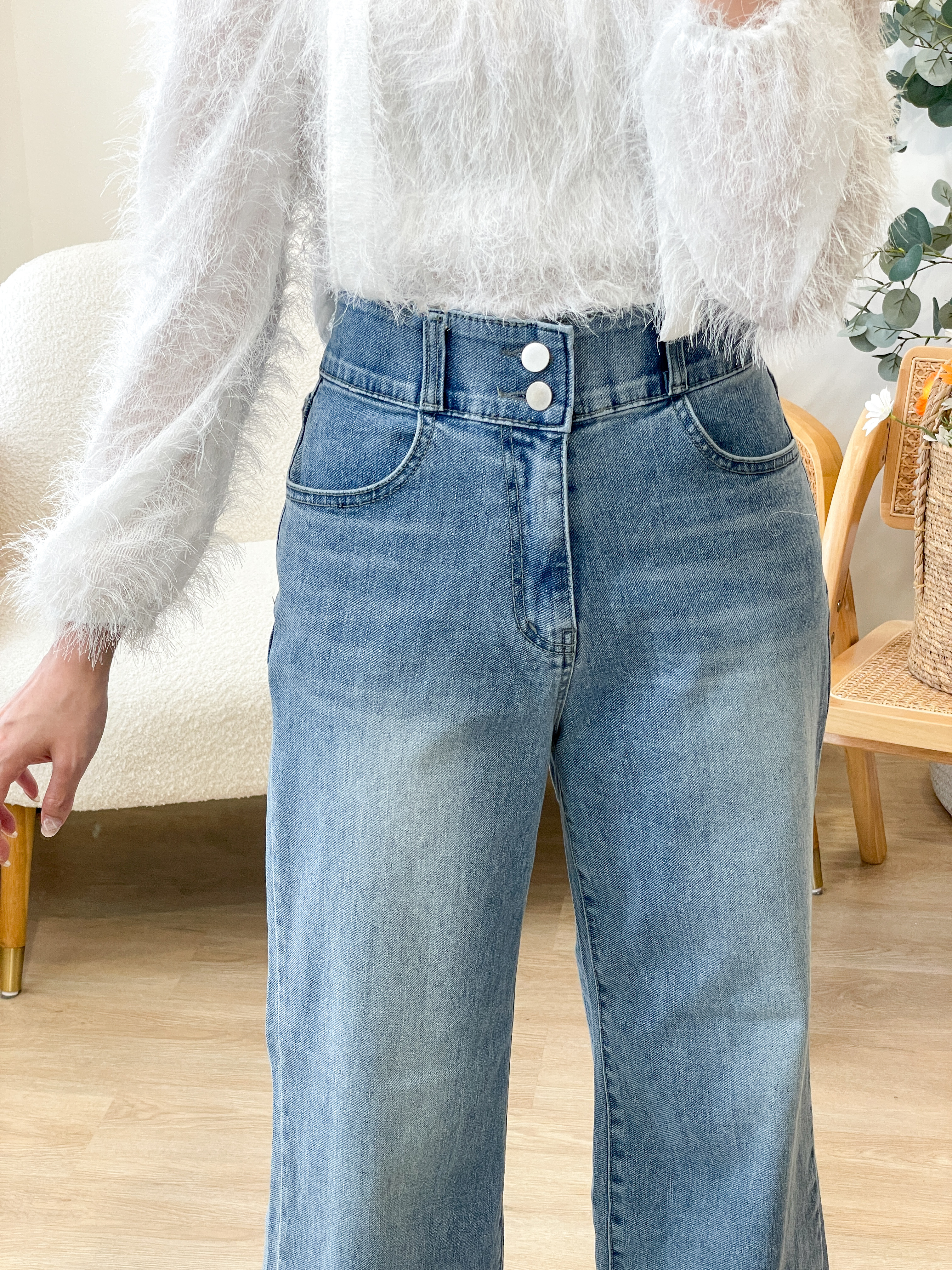 JEAN192 2-Buttons Wide Denim Jeans