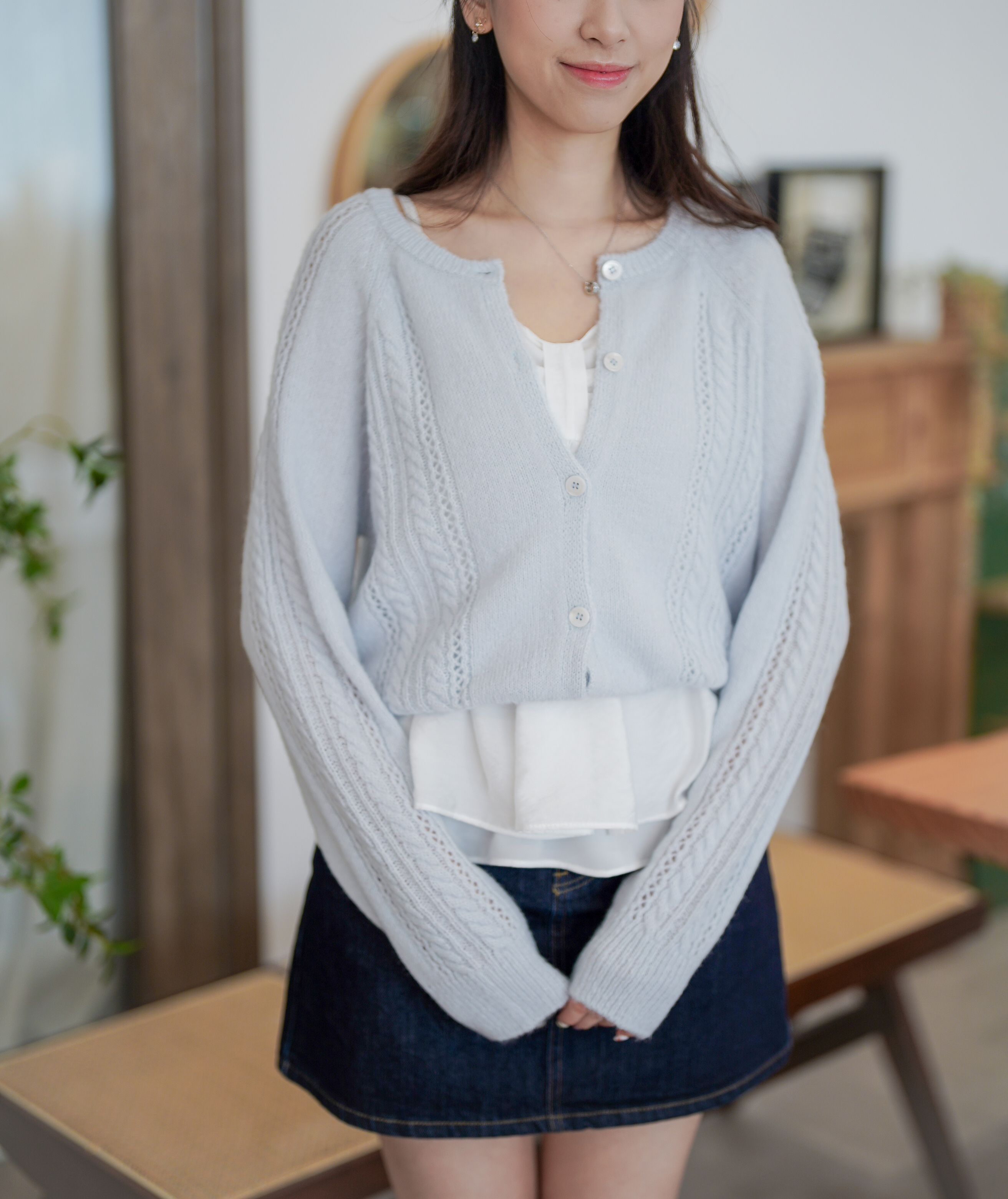 JK285 Nova Blue Braided Cardigan