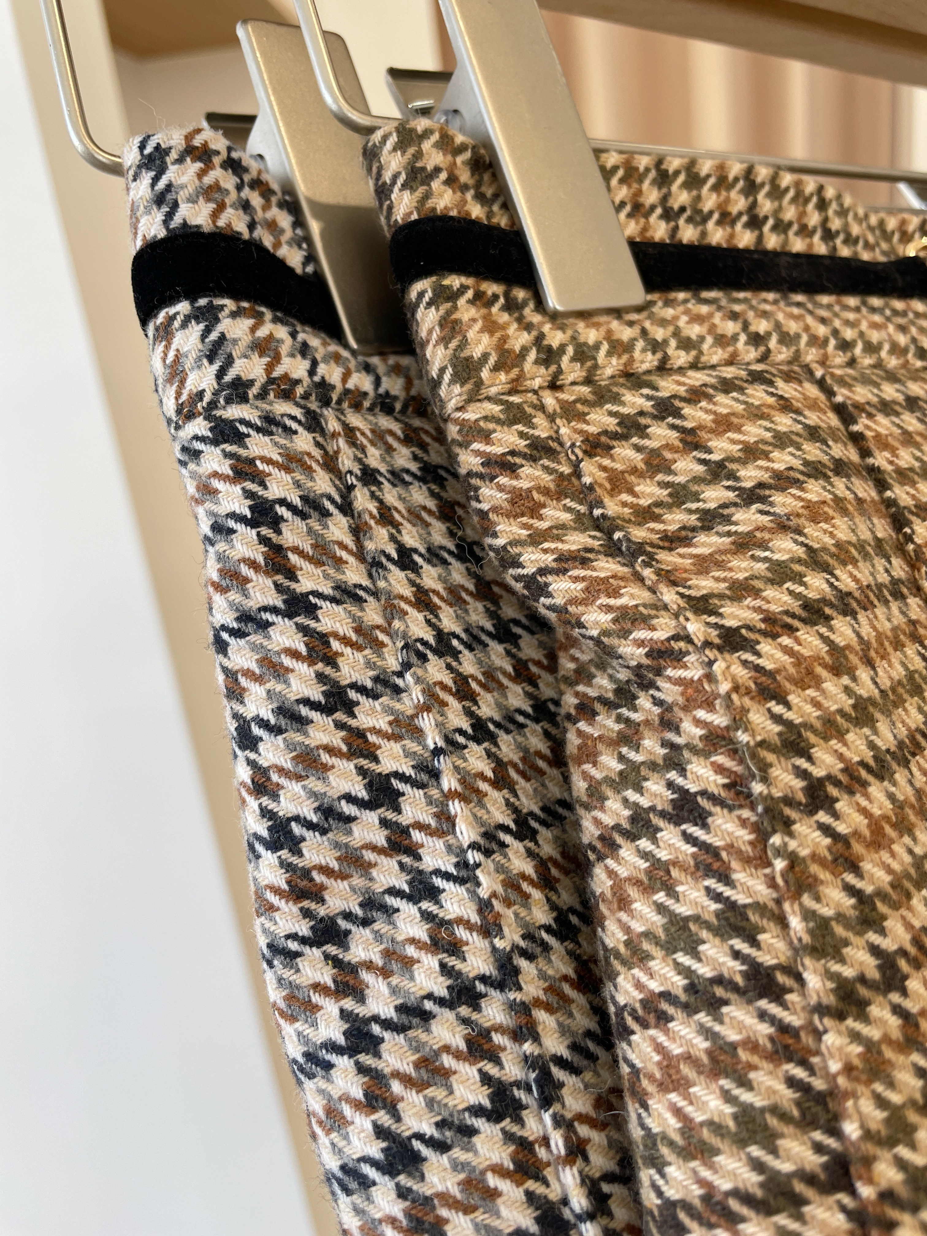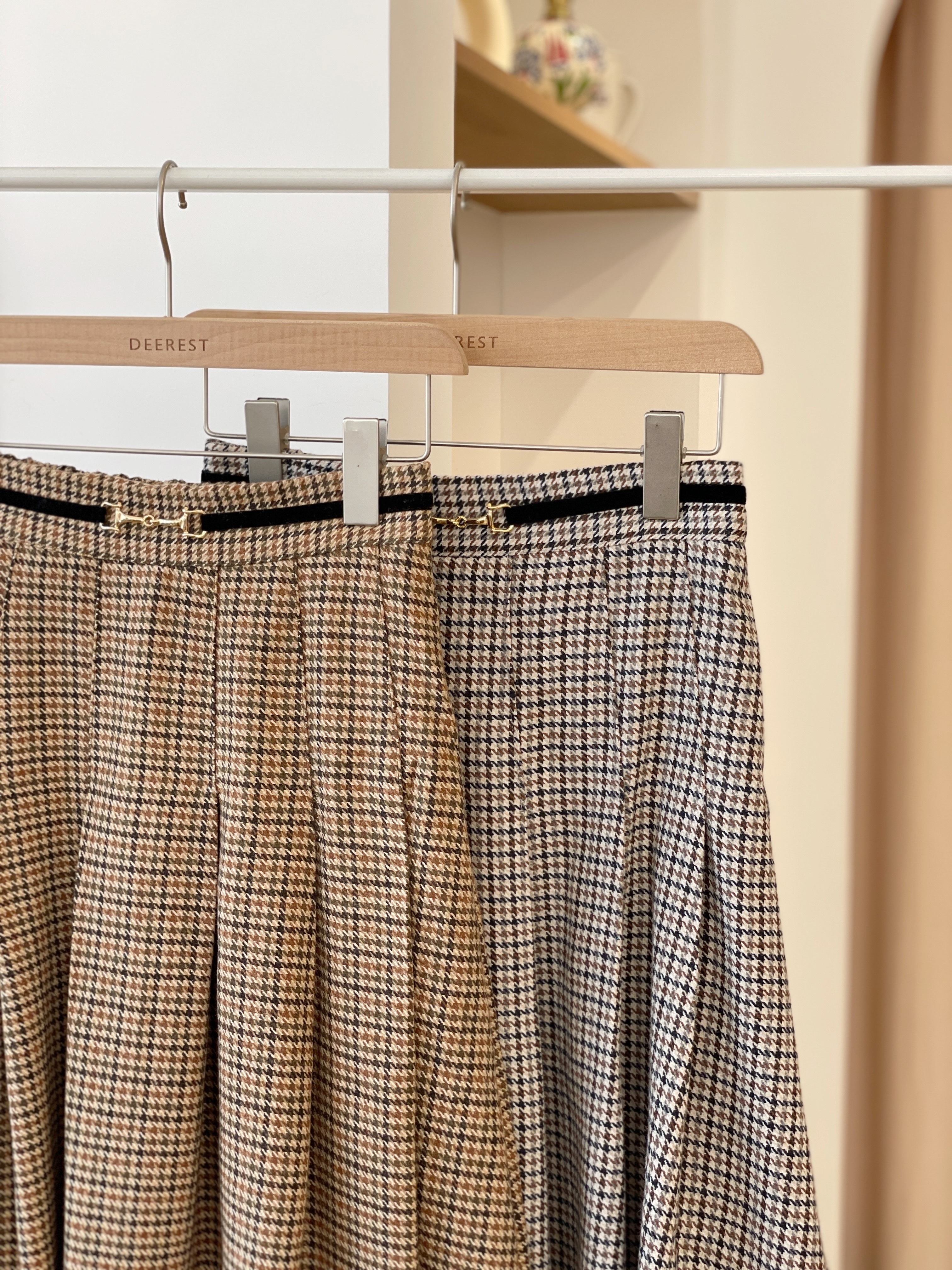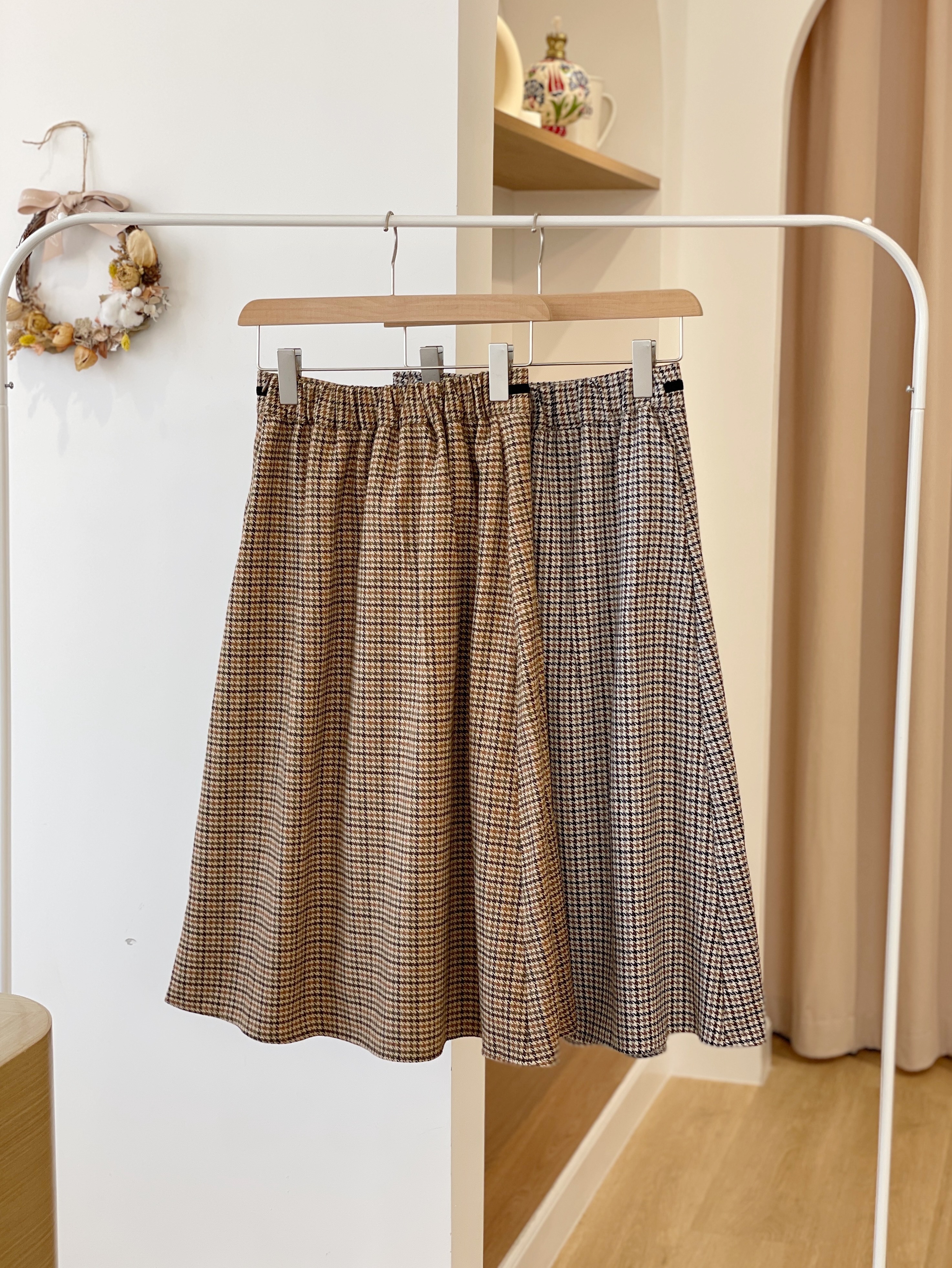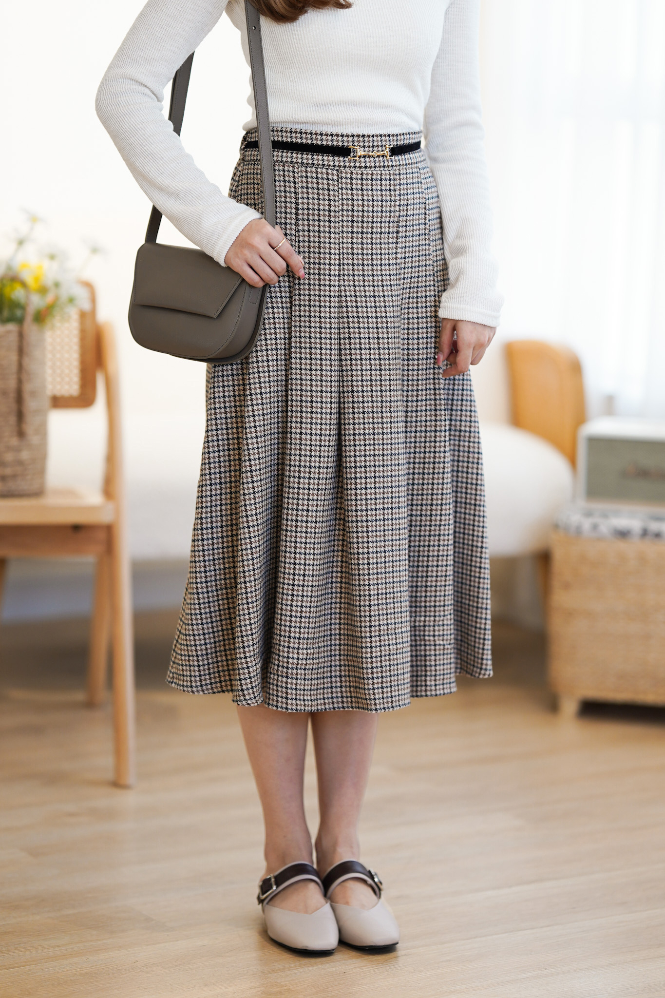 SK372 Houndstooth Belted Long Skirt