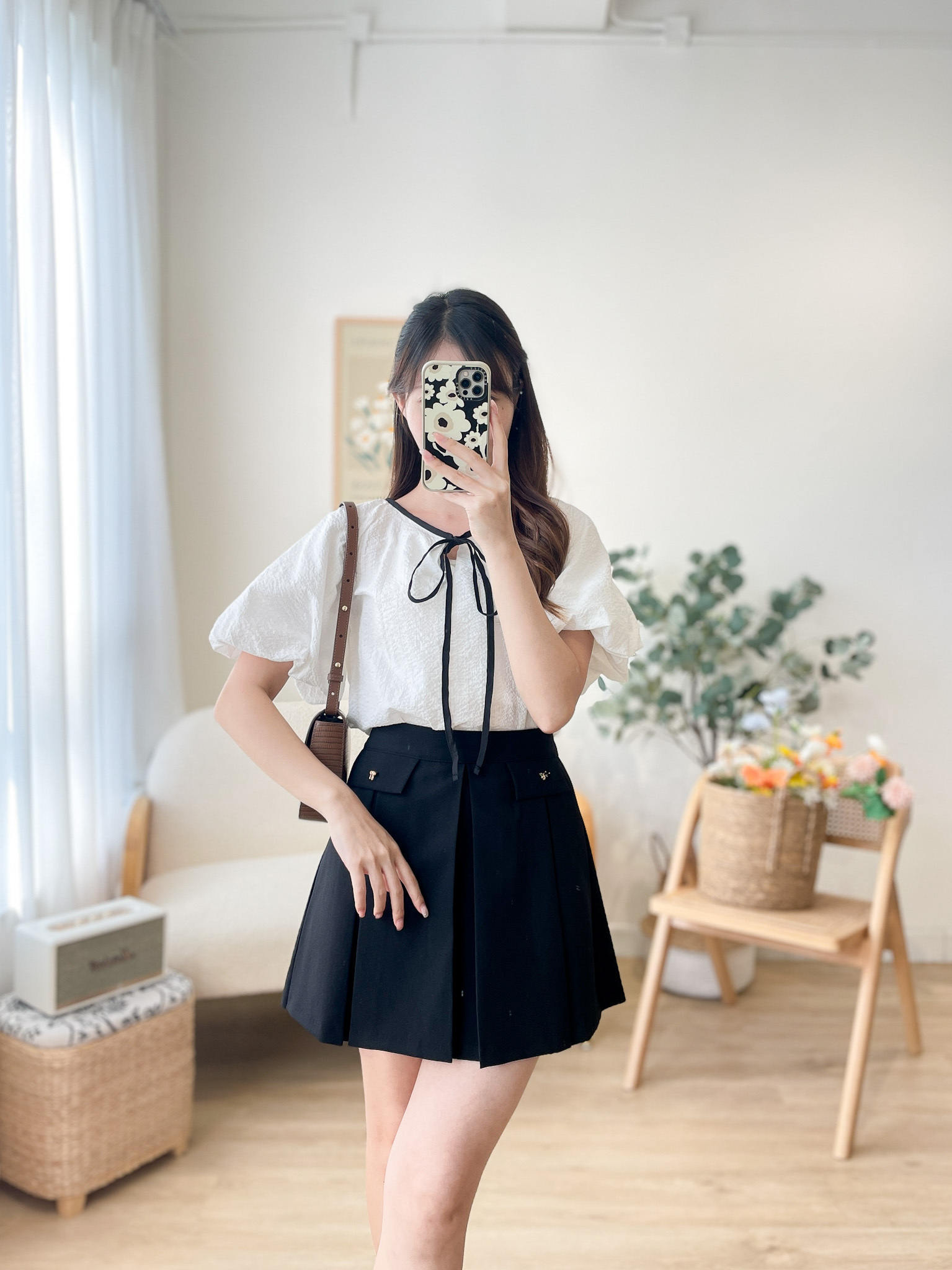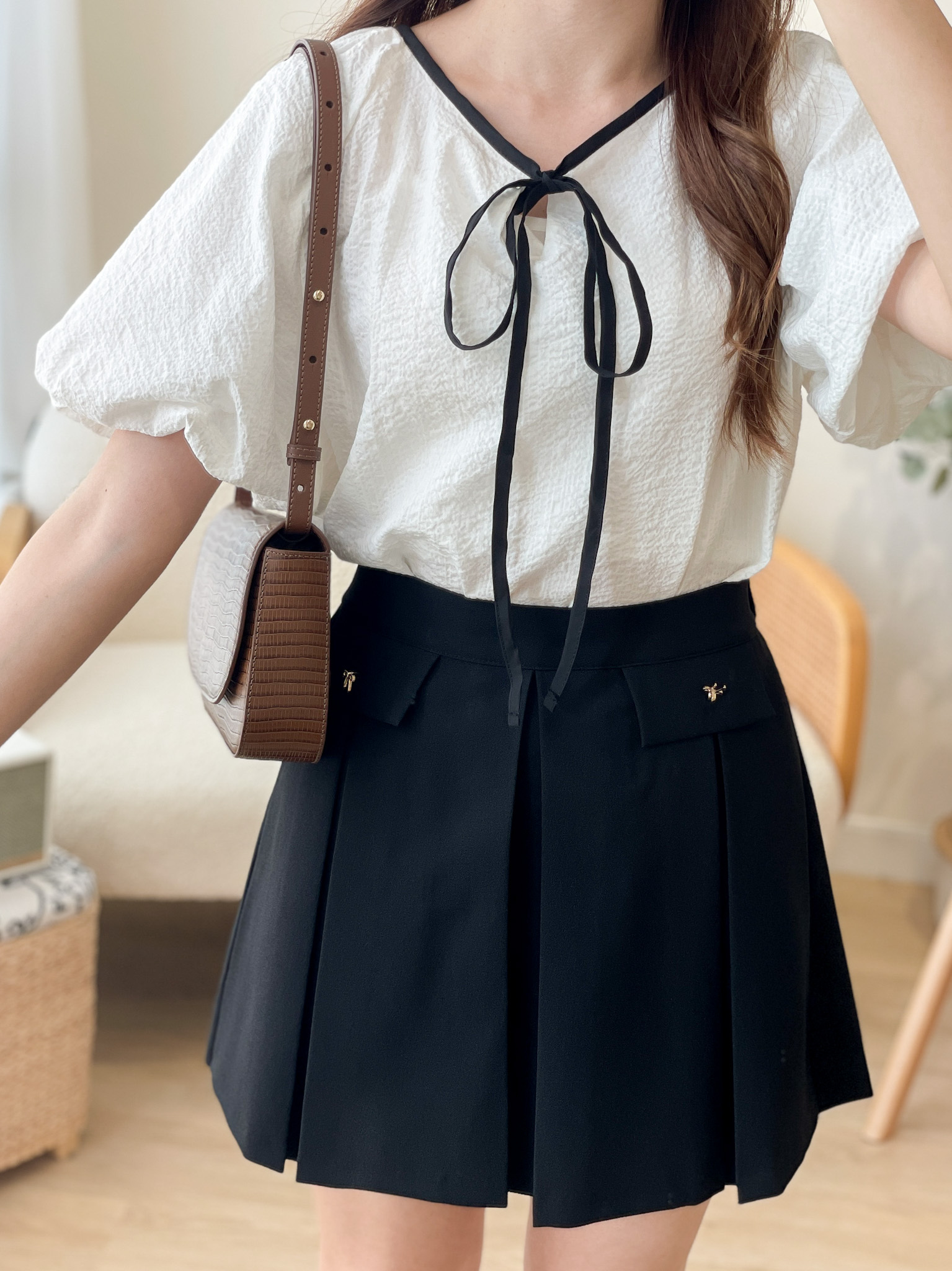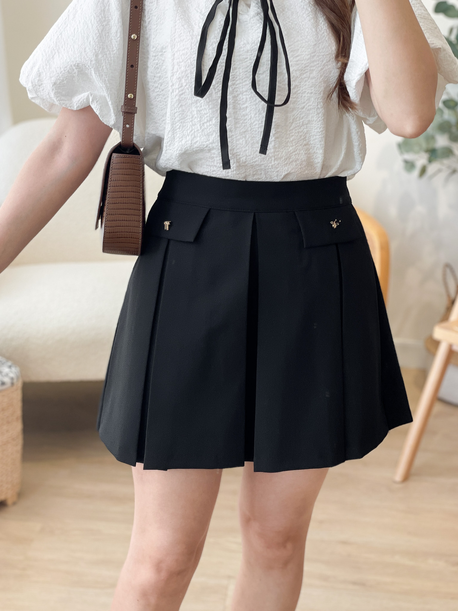 SK478 Metal Ribbon Pleated Mini Skirt