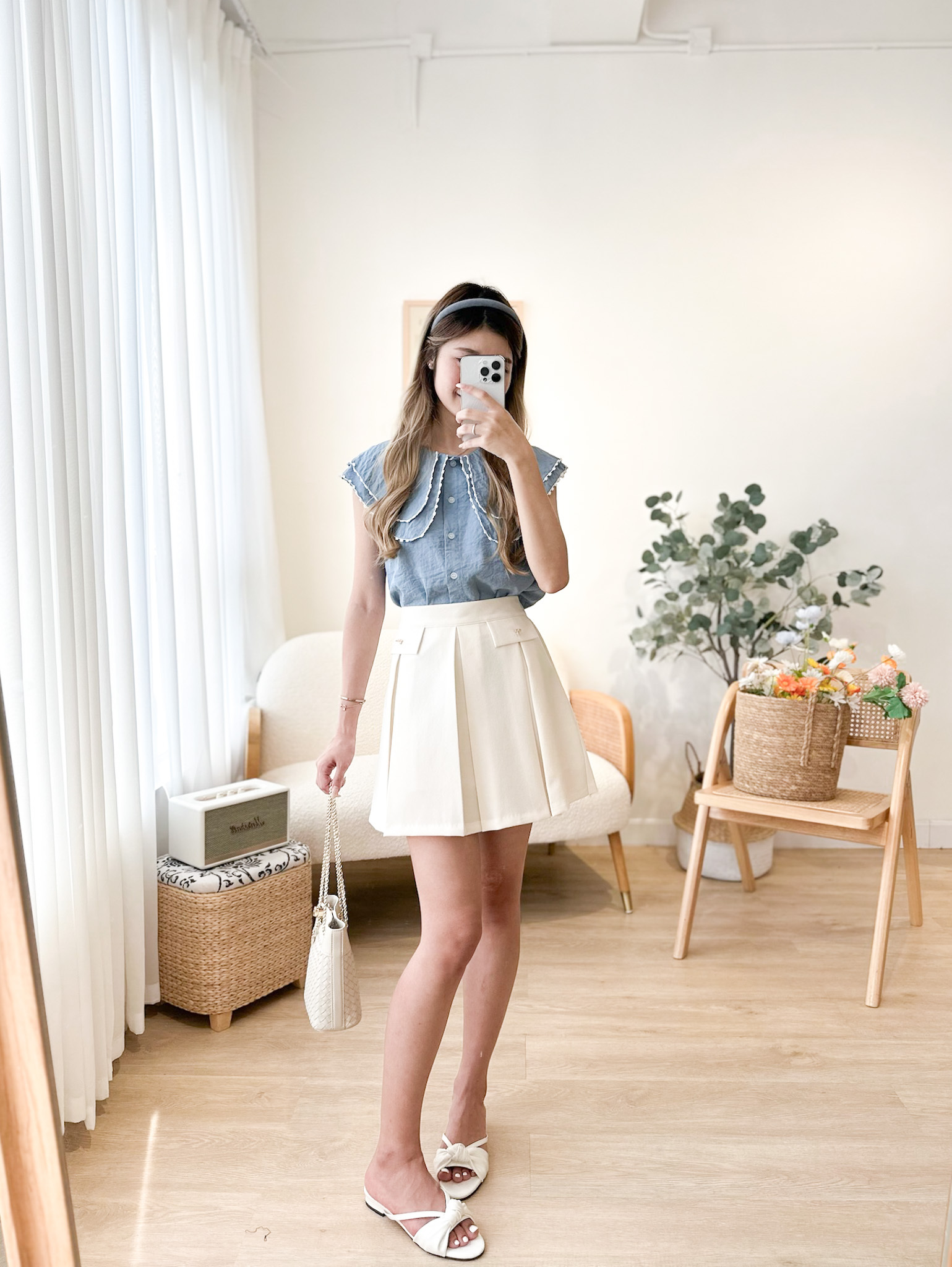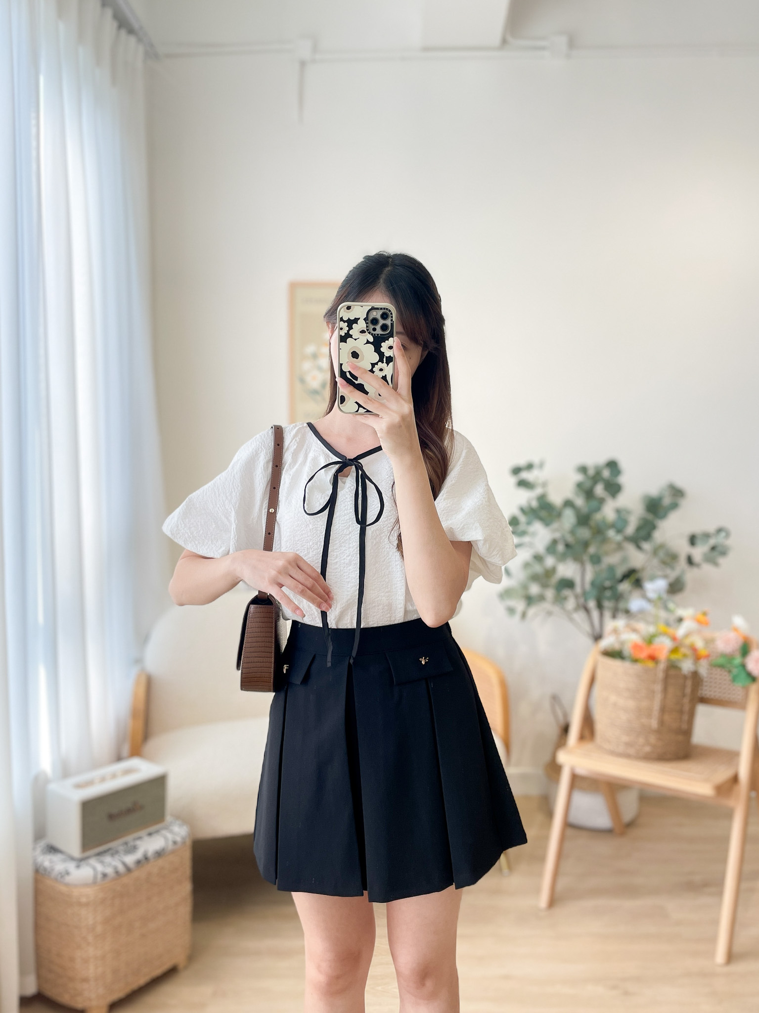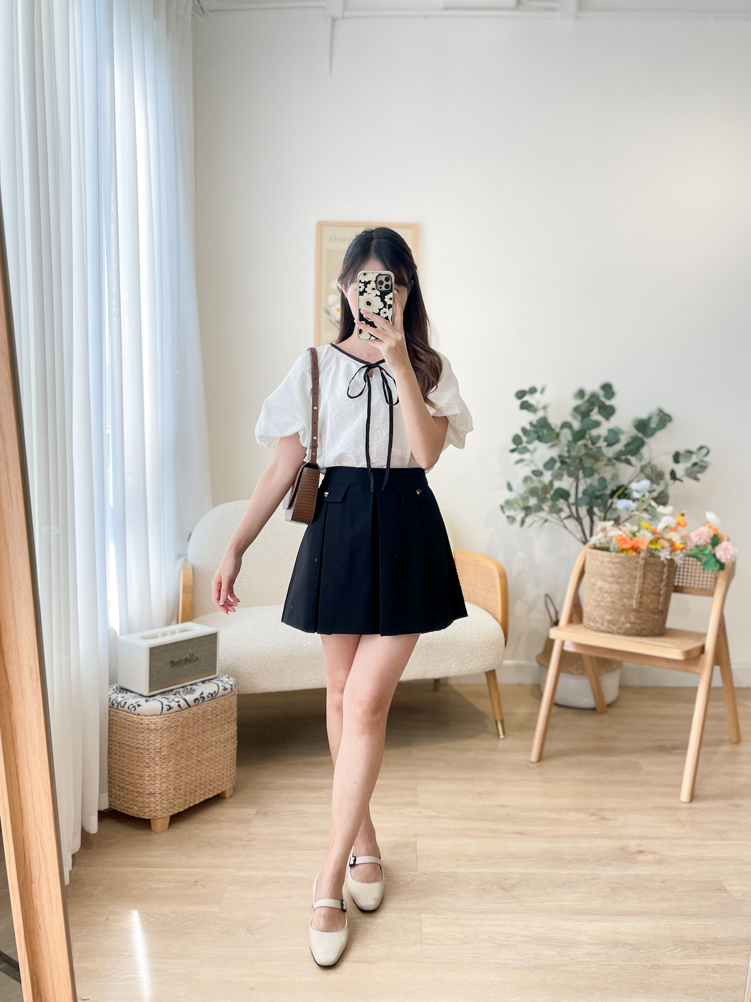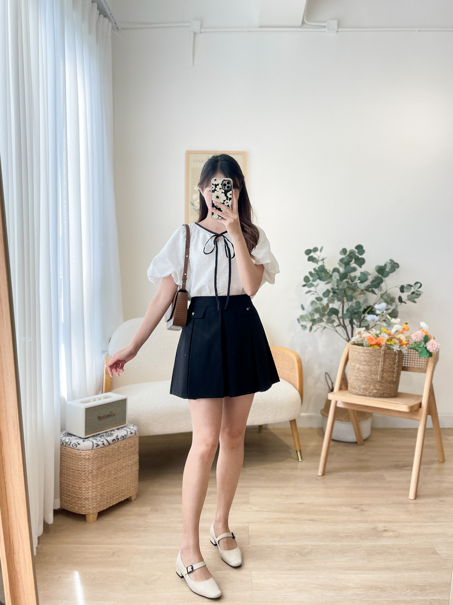 SK478 Metal Ribbon Pleated Mini Skirt
