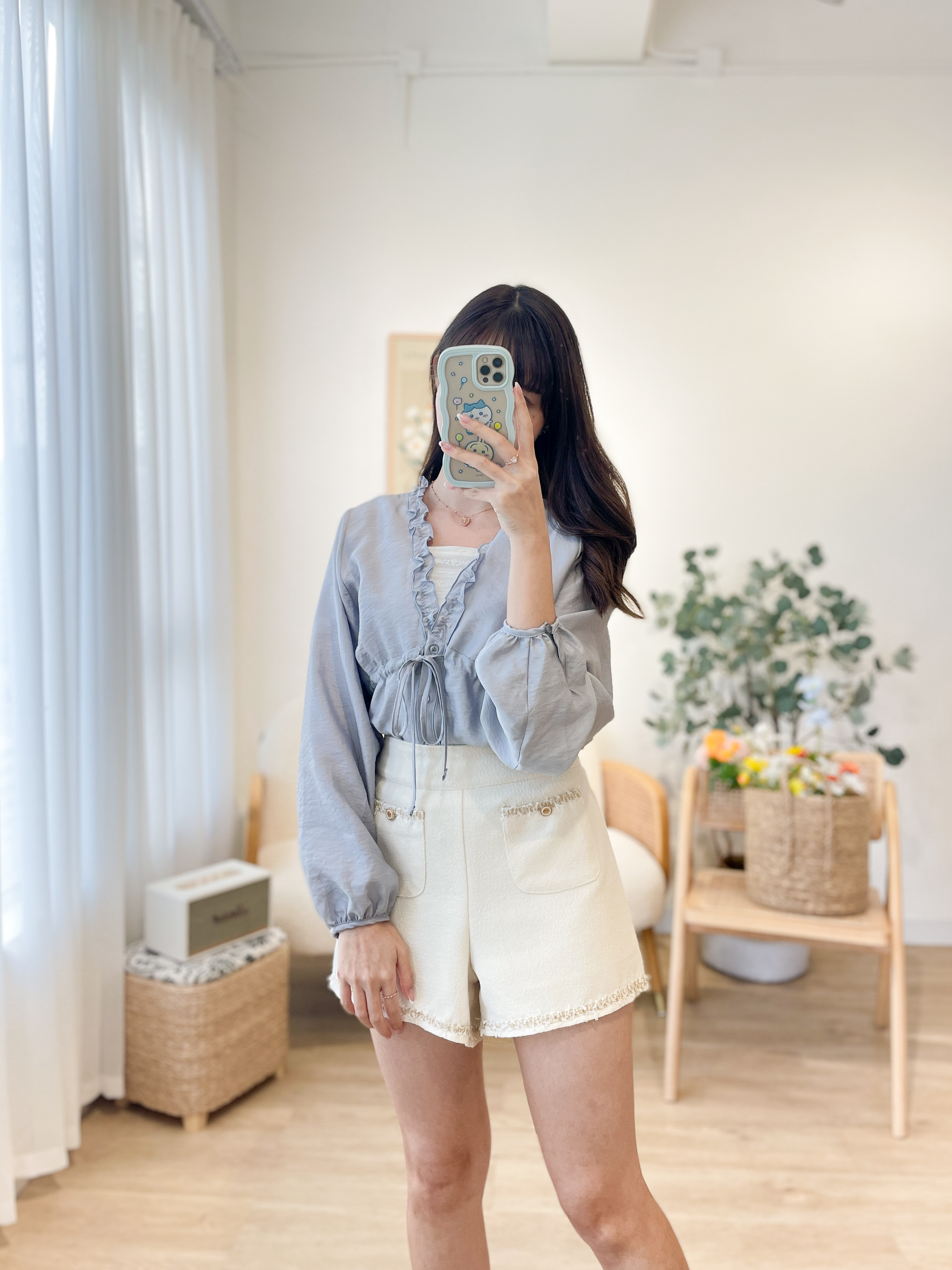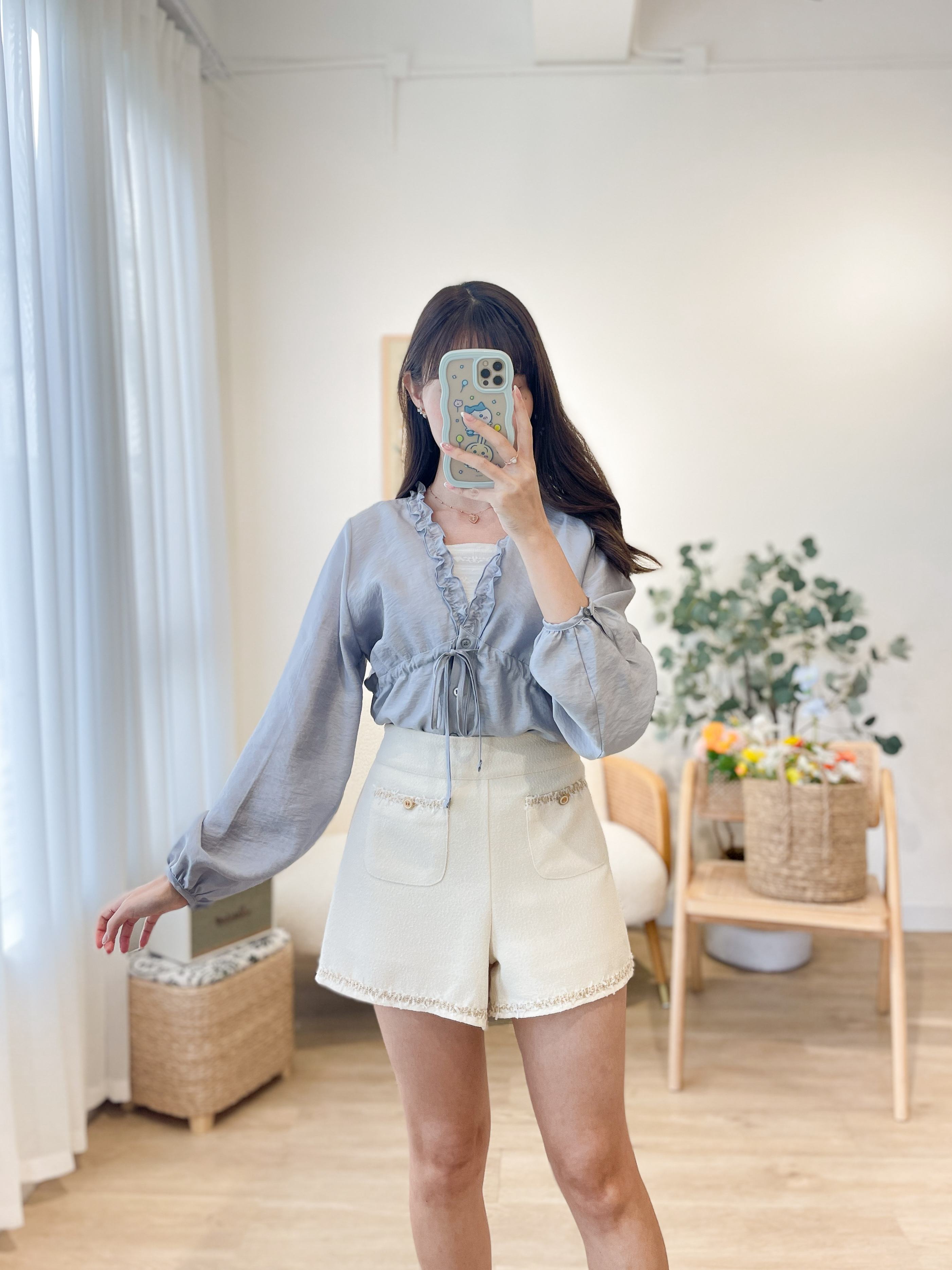 T1158 Maya Blue Ruffles Blouse