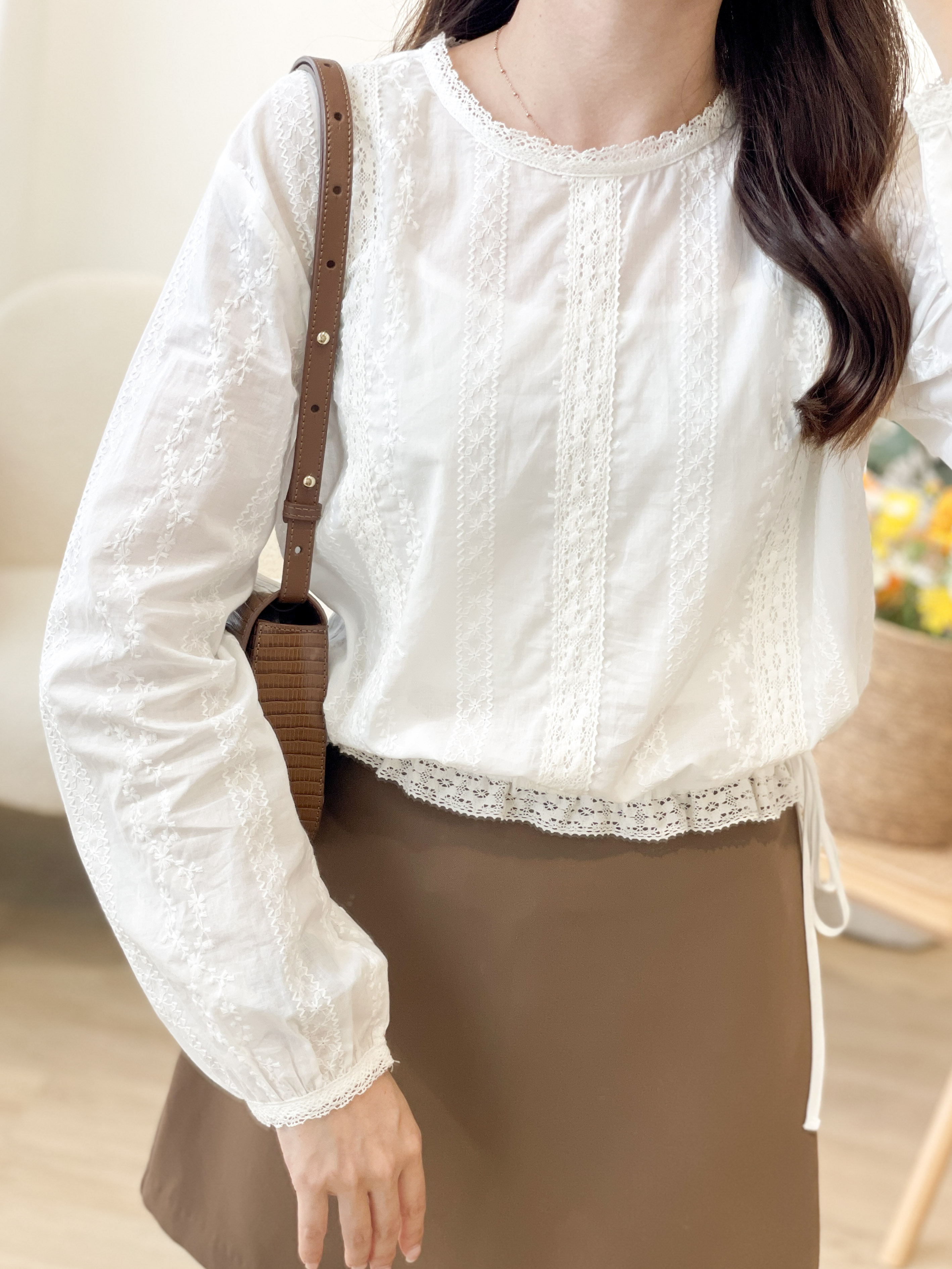 T1378 Lace Cascade Blouse
