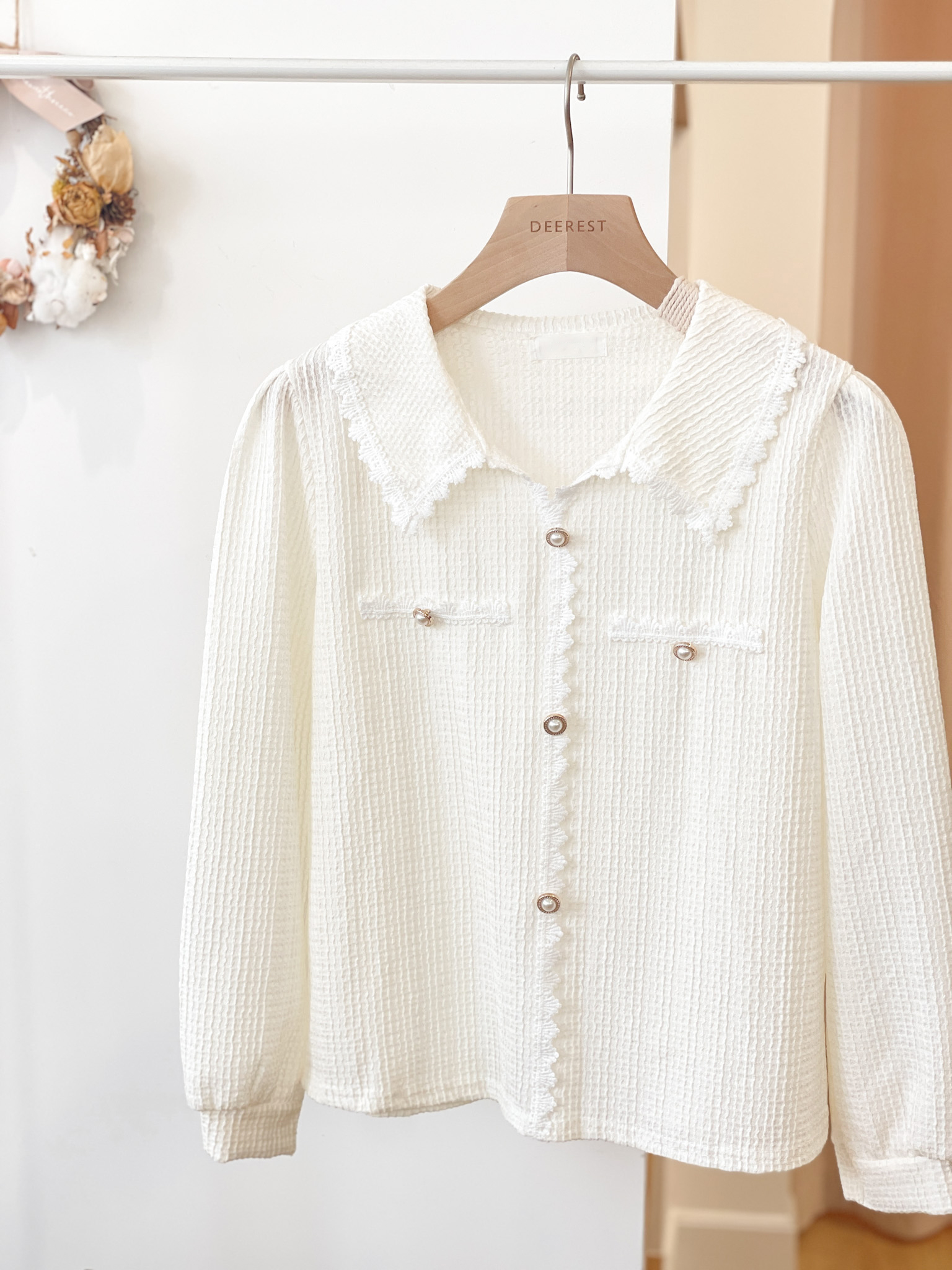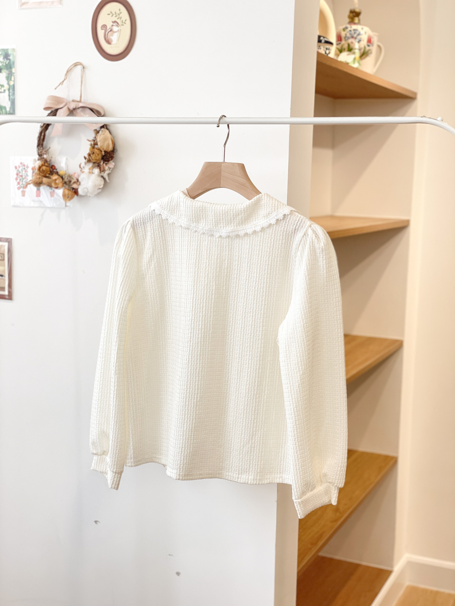 T1398 Waffle Lace Trim Blouse