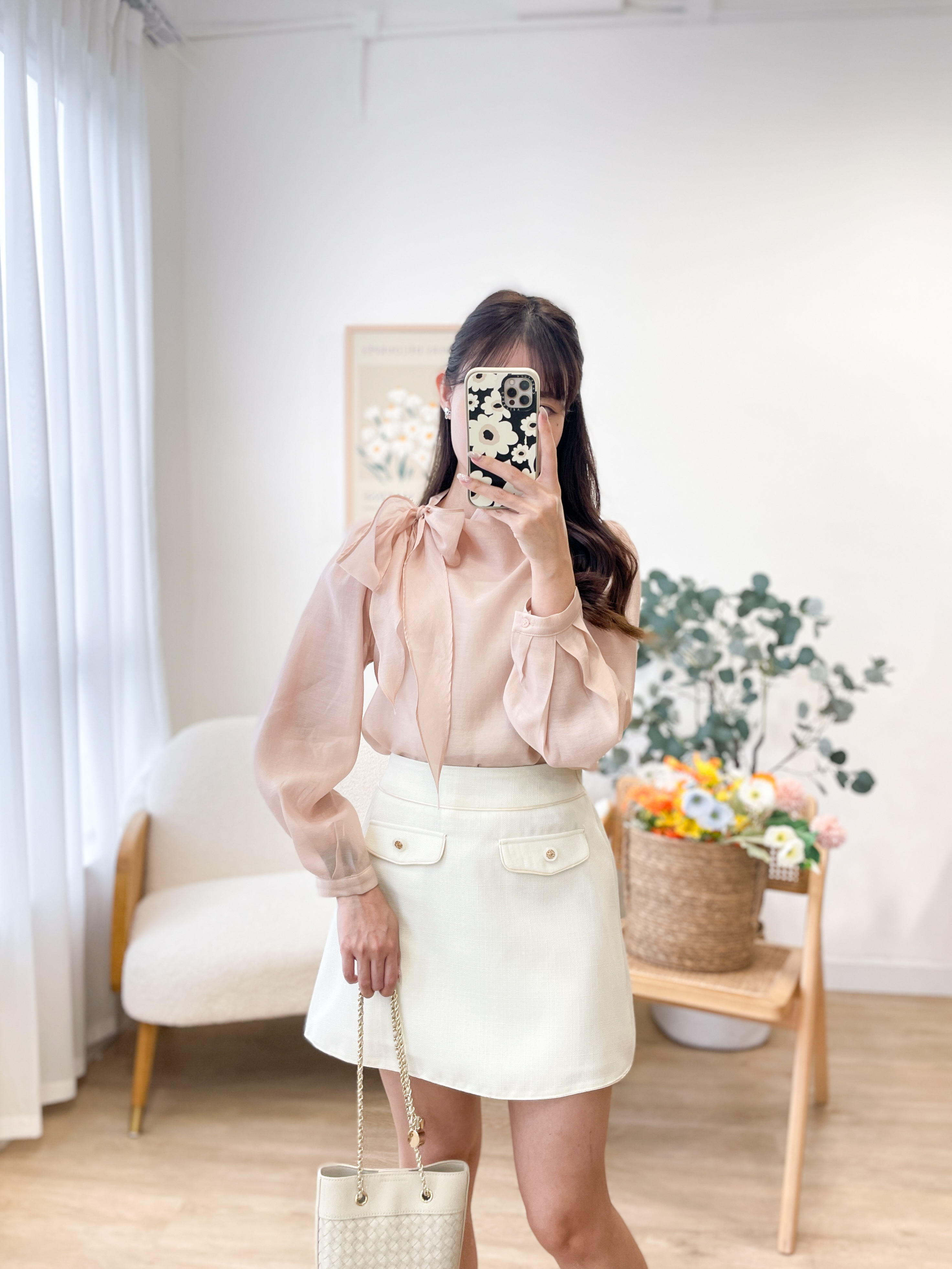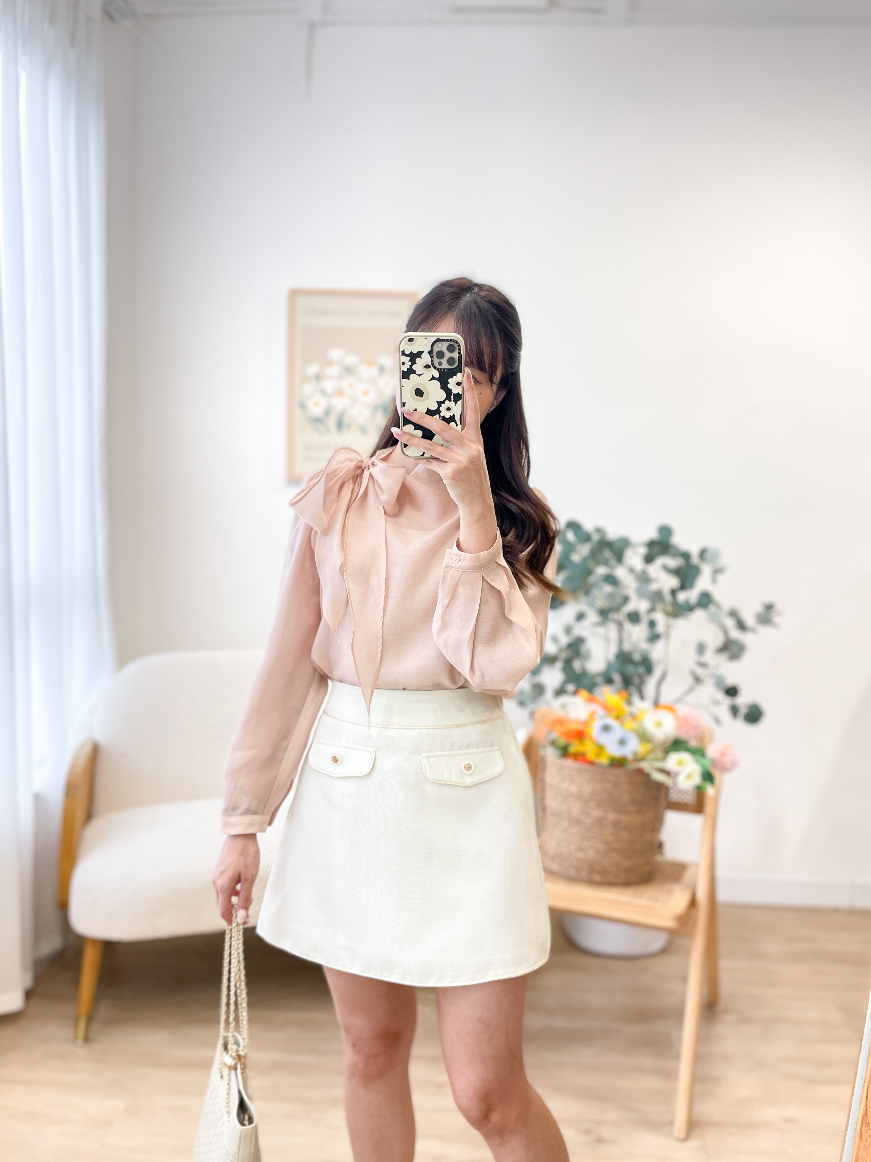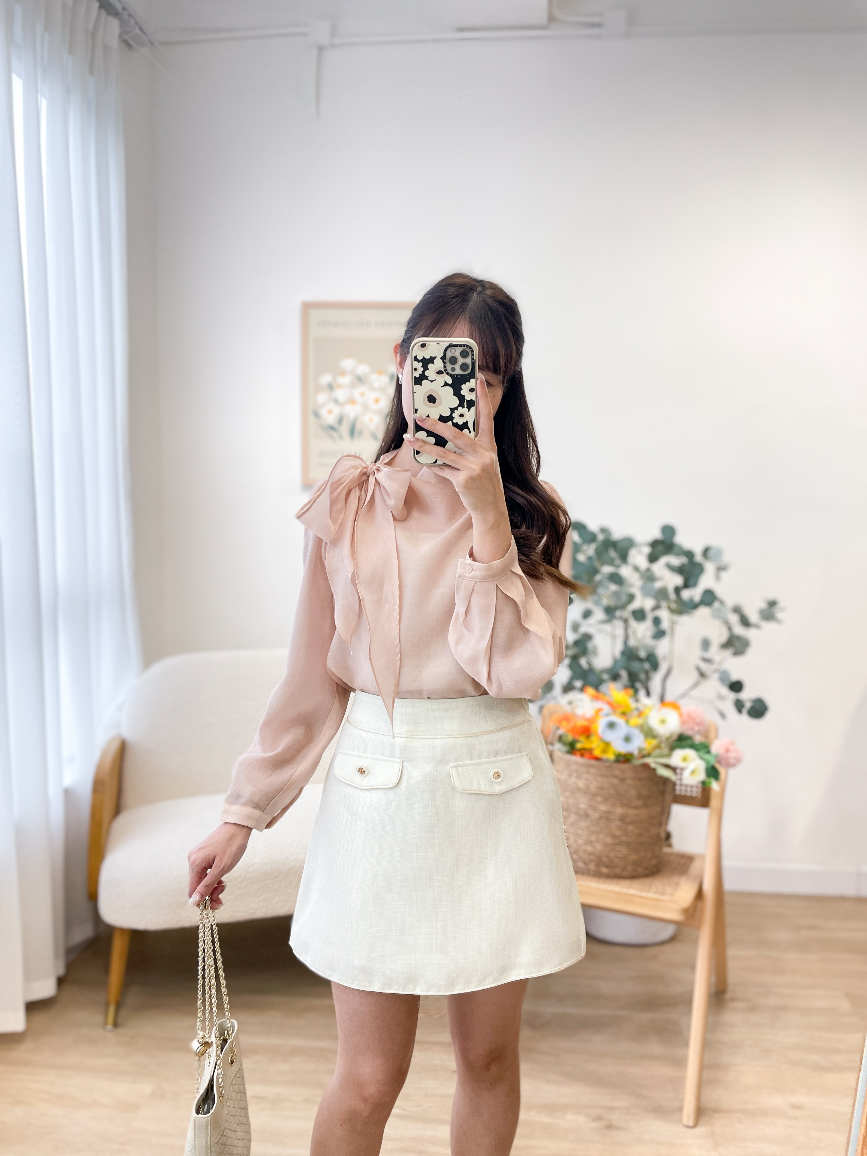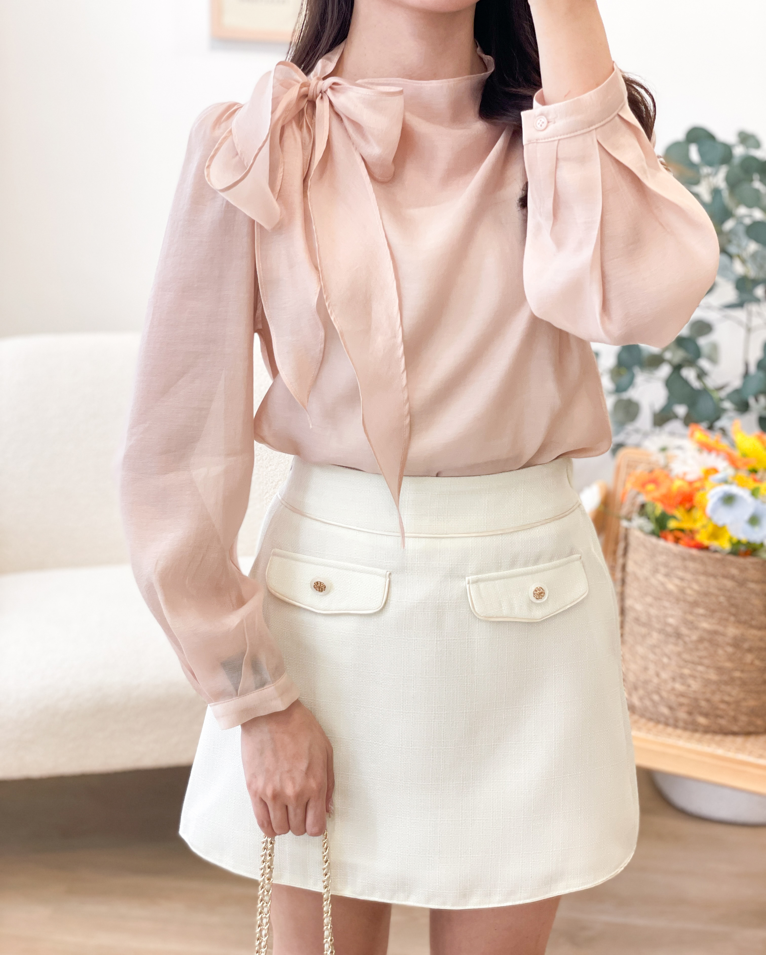 T1417 Perla Ribbon Silky Blouse