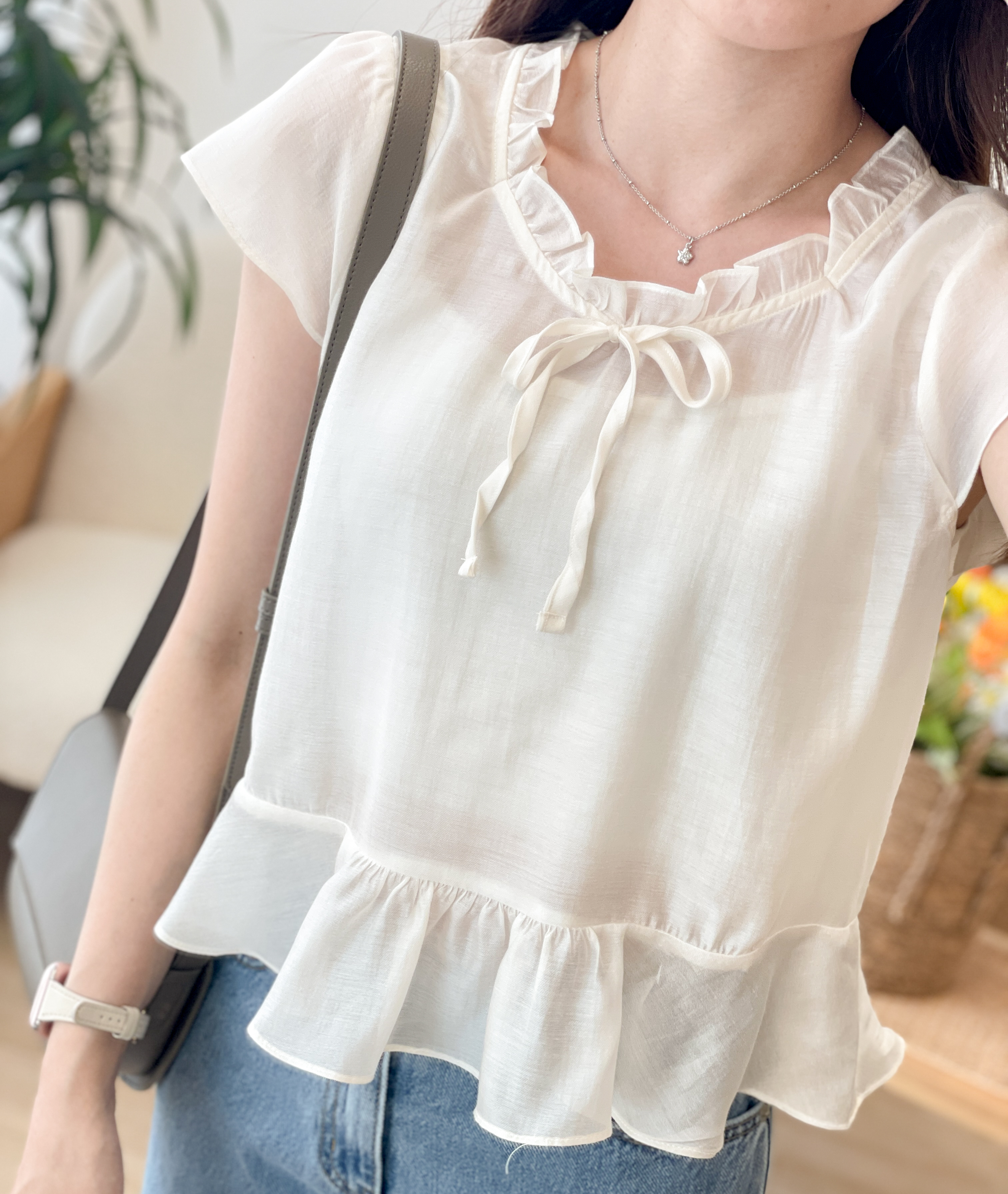 T1499 Cameo Beige Sheer Blouse